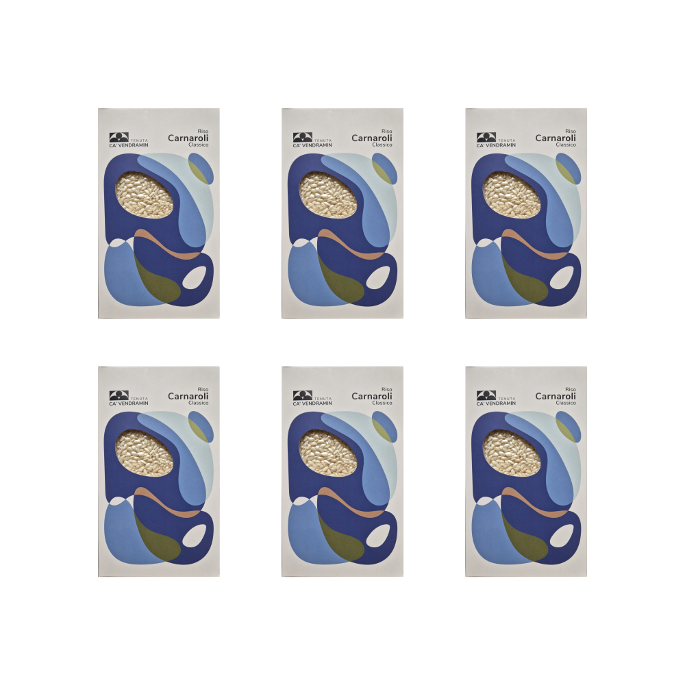 Riso varietà Carnaroli, coltivato nei terreni della Tenuta Ca' Vendramin. Ideale per la preparazione di risotti pregiati. Si distingue per l'eccezionale tenuta in cottura, per la consistenza del chicco e la particolare sapidità. La scelta preferita dai grandi chef.